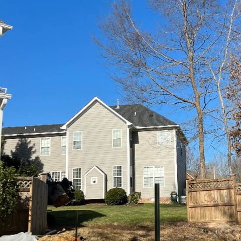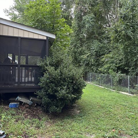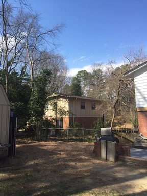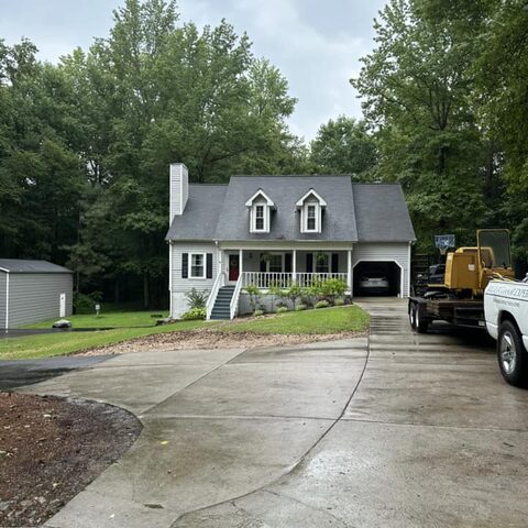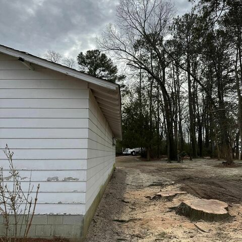Removed 13 trees and stumps from back of property with no access on both side of home.