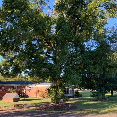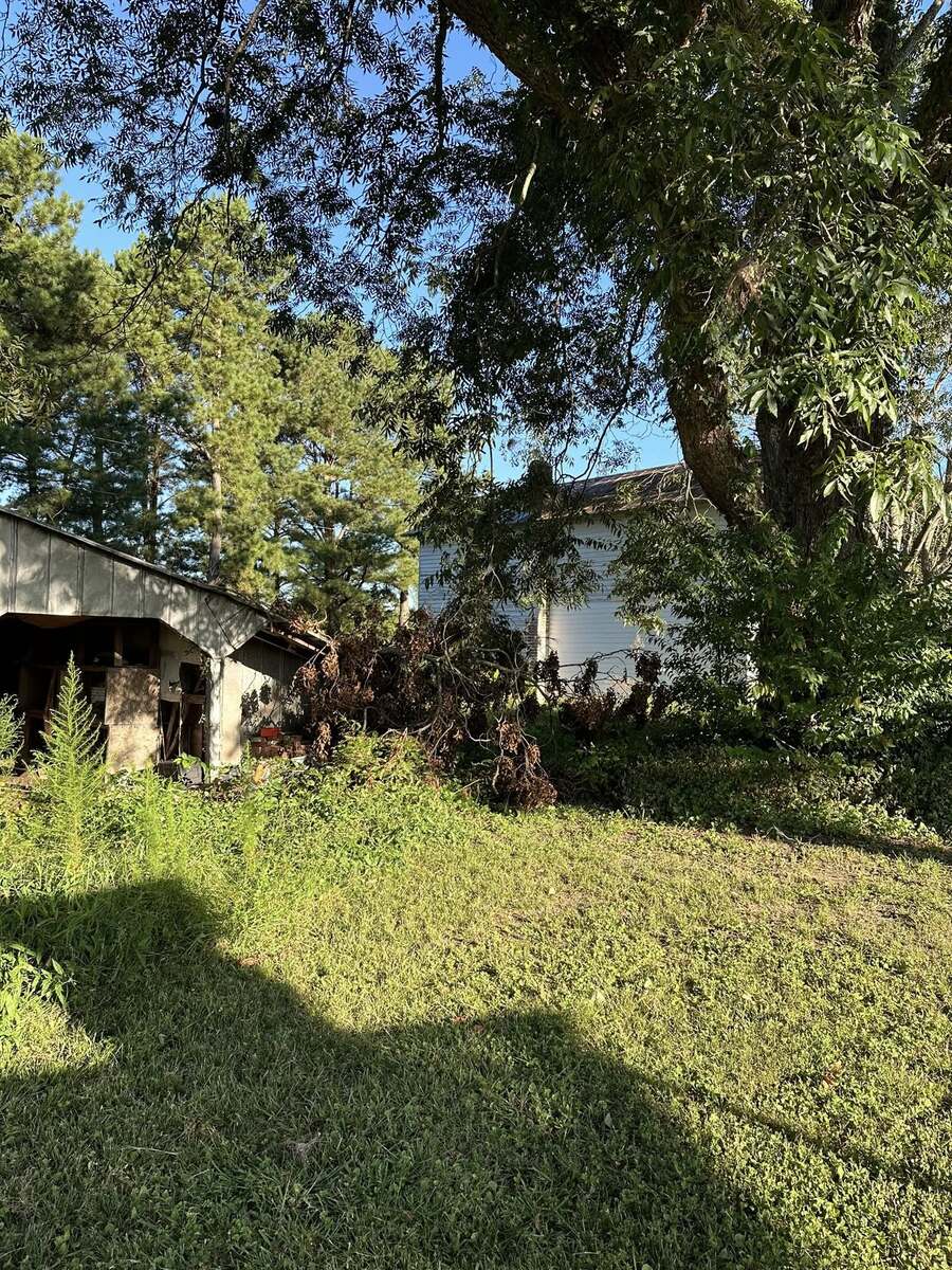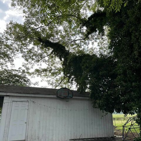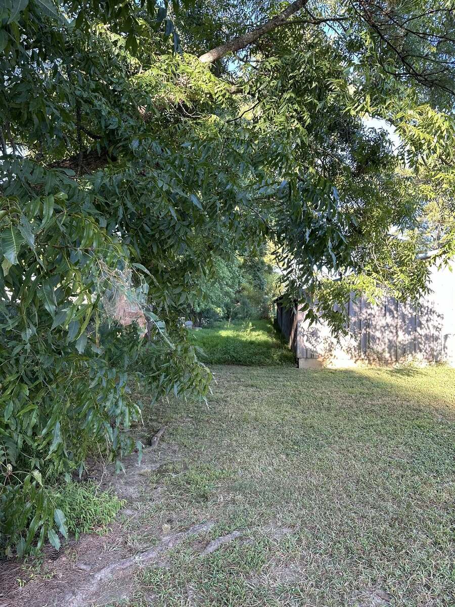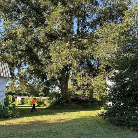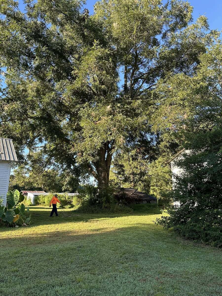 Trimmed large pecan tree and cleaned up property. Removed trash, old burn pile and graded areas