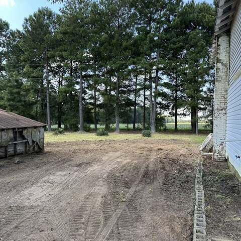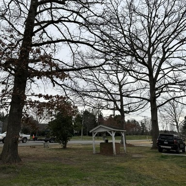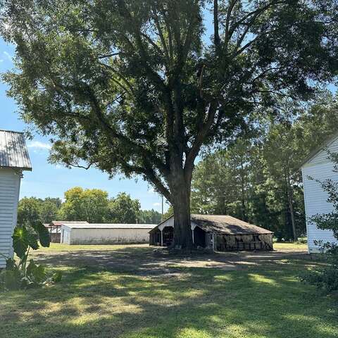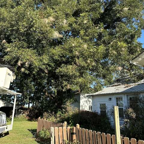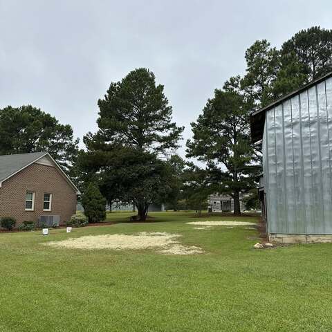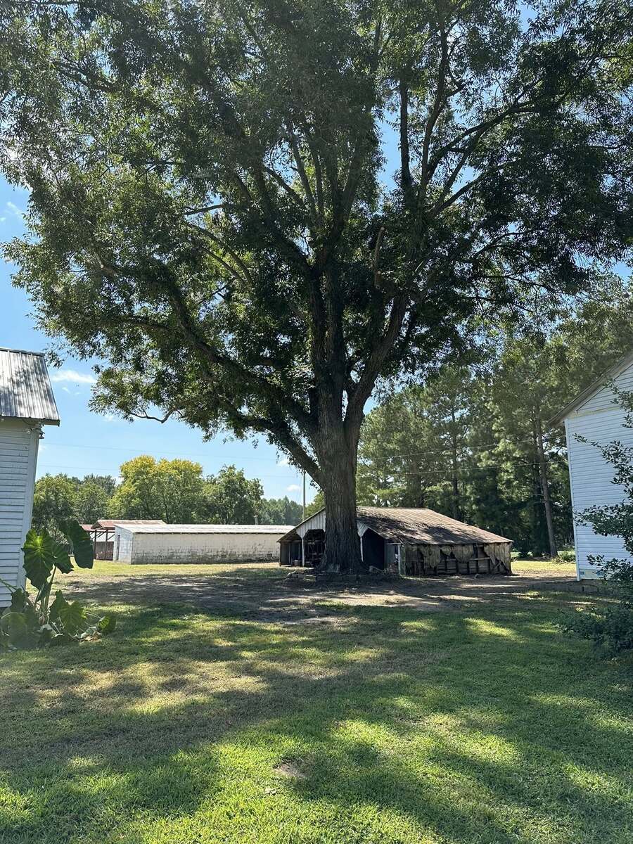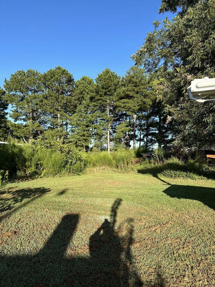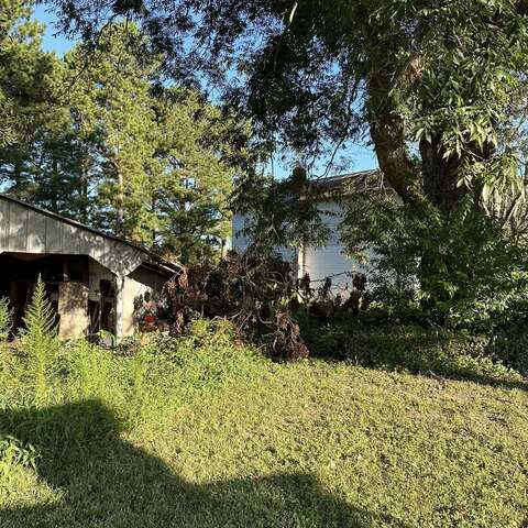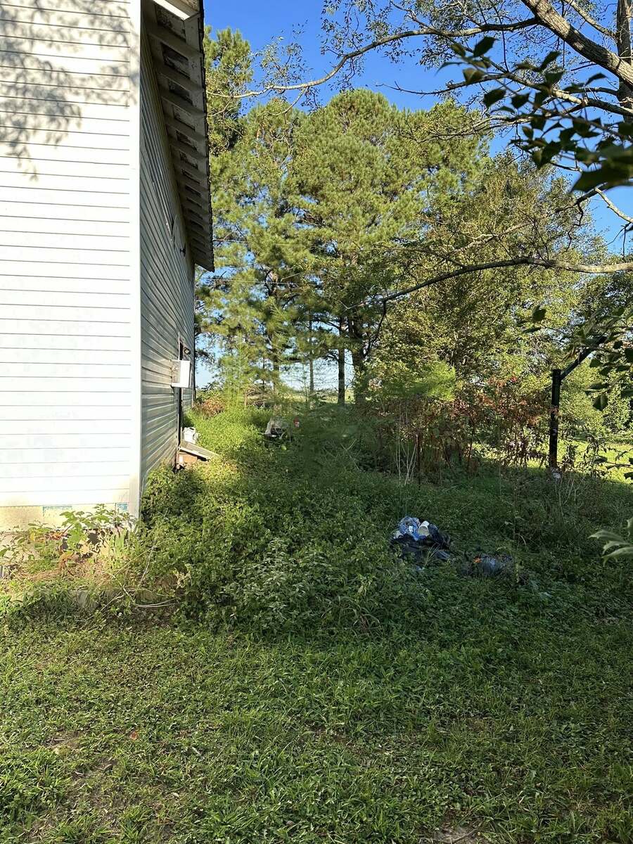 Trimmed large pecan tree and cleaned up property. Removed trash, old burn pile and graded areas