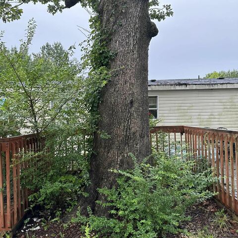 Removed four large oak trees and stumps for a happy customer!