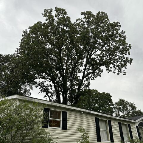 Removed large oak branches over home and service wire