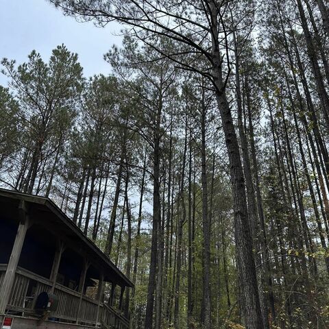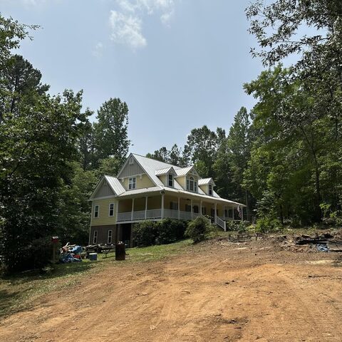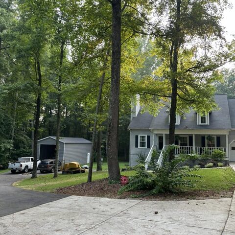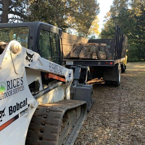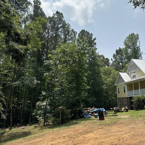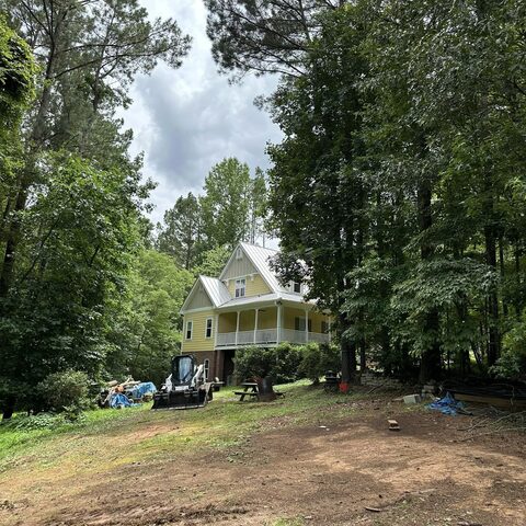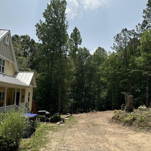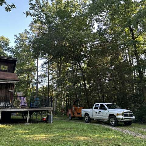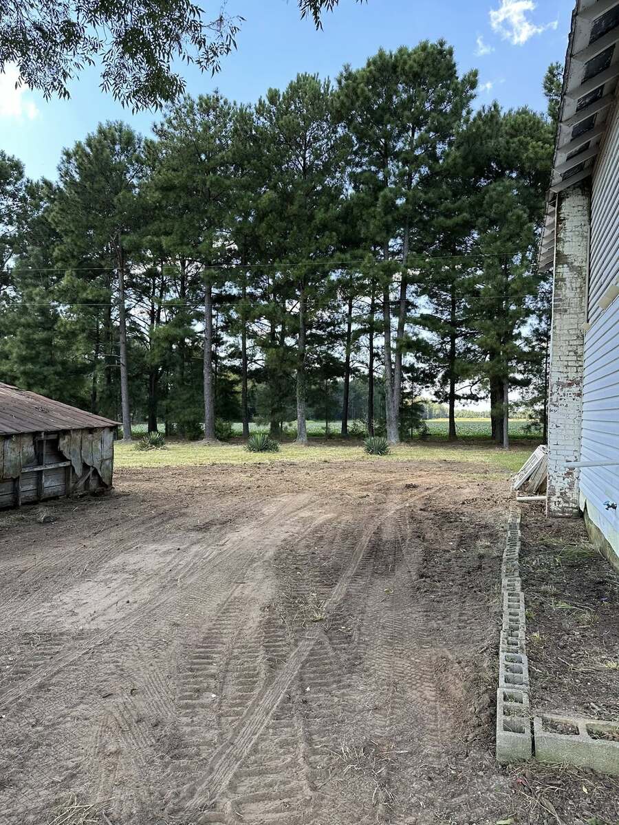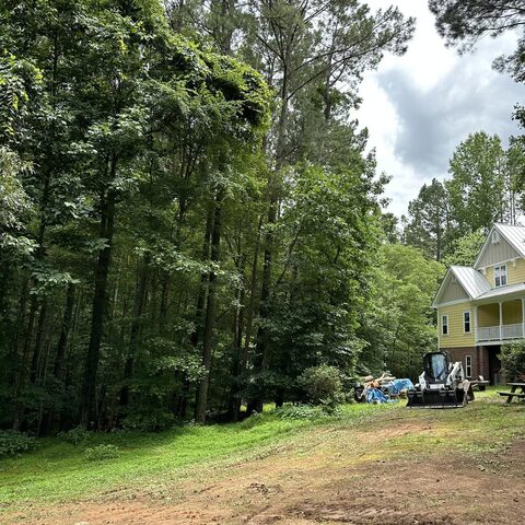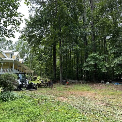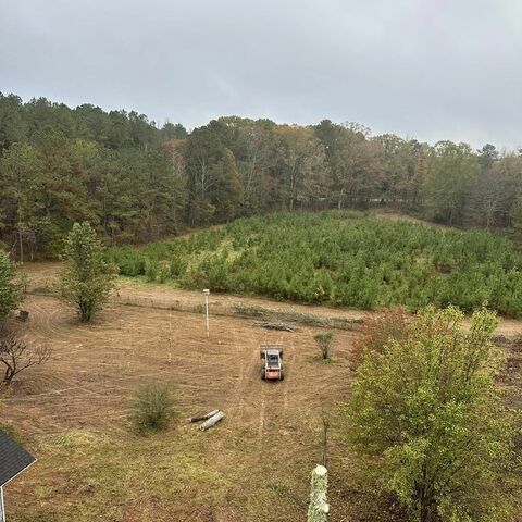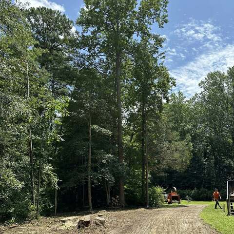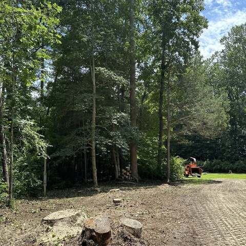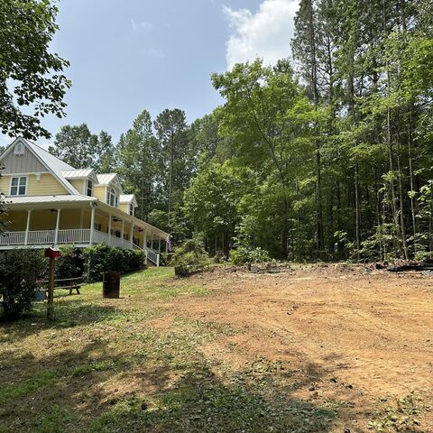 Safely removed over 60 pine trees close to home and cleared area for garage.