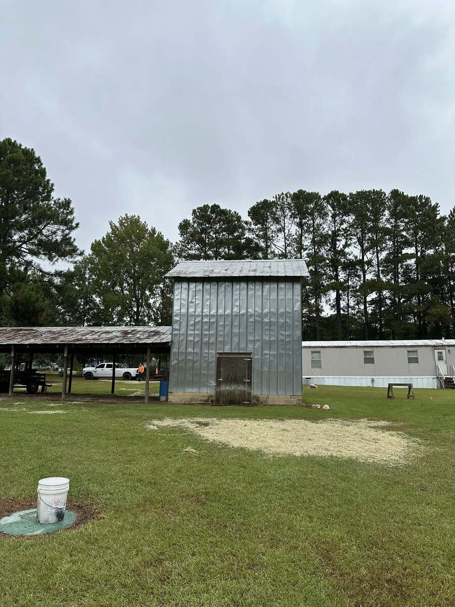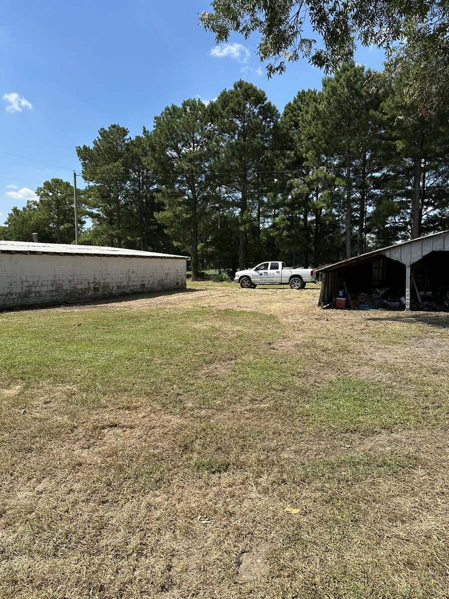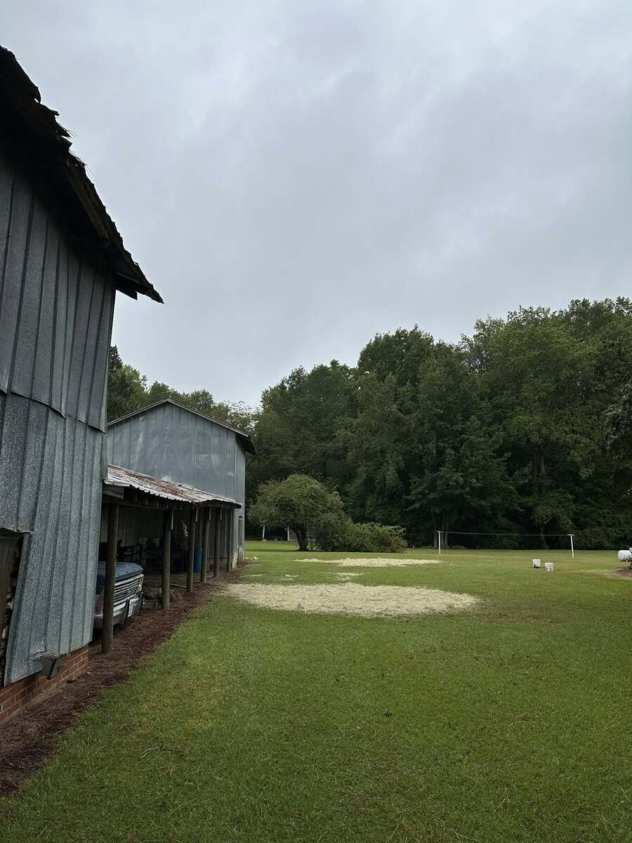 Removed weeds, under brush, vines and graded area.The smaller barn can be seen now